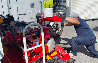 大型車両専用の機材を搭載したサービスカーによる安全で確実な作業を現場で提供。整備工場と同等の設備で品質面でも妥協のないサービスを実現しています。